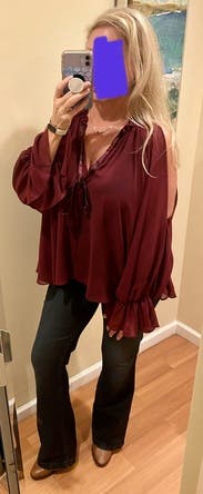 Loved this top! Very comfortable and fit perfectly/true to size. Beautiful burgundy color. Don't hesitate to rent this one!