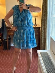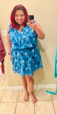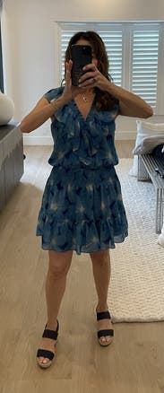 Fun, flowy dress. I loved it! Fit was a little loose, but I’m not sure if sizing down would make it too short.