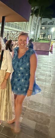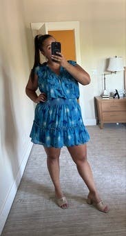 I wore this dress to dinner while on vacation. It’s a perfect throw on dress for the summer where you can dress it up or down. Fits just right! Would rent again!
