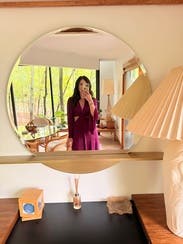 Seriously a stunning dress. It's so comfortable (runs a little big tho!) and the color is so vibrant and juicy. I received endless compliments -- I wore it to a festival -- and just really vibed with the bell sleeves and ankle length. Not needing to wear a bra was nice too :) Size down and you'll love this!