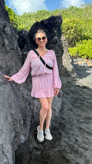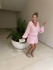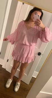 Was obsessed with this dress I almost bought it! A little on the short side but still felt comfortable wearing it to dinner at the beach. Also wore it as a cover up. Just felt super cute in it and thought it was so flattering!