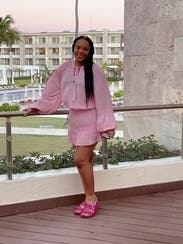 Super feminine with lots of pretty details. The top is full & flowy and bottom is fitted & short. I personally loved this for a casual shopping day on vacation. Would rent again.