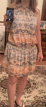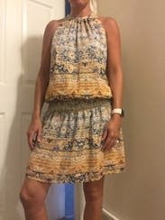 Loved the print. Super flattering colors with a summer tan. Great summery dress for everyday or date night. BUT their was way too much material on the top half for a petite frame. No matter how I tucked material into the waistband, there seemed to be excess bulk the way the fabric fell above the waist. I still wore it, but it wasn't as flattering as other dresses by this designer on me.