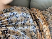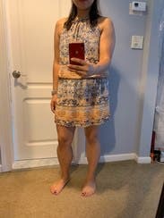 Wore this for a night out with friends. The fit was cute, perfect length for me (I'm 48), and the material wore beautifully during a humid evening of dancing outside. I wasn't in love with the print, but for one night, it was perfect.