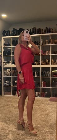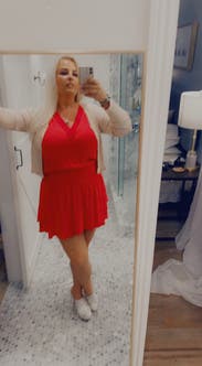 I loved this dress and did not want to return! I don't usually wear short skirts, but this felt so flirty and fun (especially after a year of yoga pants and sweats). Wore it for going out on vacation. My husband and my mom both approve, so it really does tick all the boxes. I wore it with sandals to keep it more casual, but could be paired with some bright heels if you're feeling extra fancy.