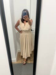 Got tons of compliments and it was very comfortable. It did weirdly come between my legs when I walked and the chest would open up a little from time to time but I liked the dress a lot
