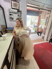 Usually my breasts are too large, and here I ran into an opposite issue… didn’t have enough to fill in a size small dress. Made it work with a safety pin. Wore it to a show in Las Vegas and it was a fun outfit