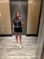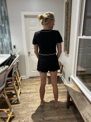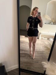 I struggled styling this without the matching top which I rated later. Lots of compliments on the matching set. I liked the top even more than the bottoms. The bottoms did run a bit small (I'm right now between a 8/10 and the 10 was a bit tight but wearable