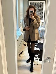 Love this blazer! An oversized look never goes out of style. Beware this blazer is a bit more like a jacket - I would size down