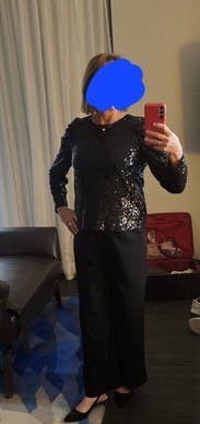 Cute top, wore it with a leather skirt for a Christmas party. The sequins on the neck did start to bother me, could be more comfortable, but it was a hit.