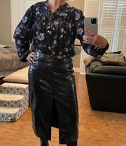 I left the RTR blue leather skirt on here because these two go really great together. There are many other colors that you could match it with due to the fabric, and I will probably rent again.