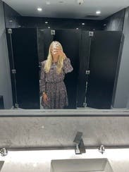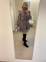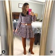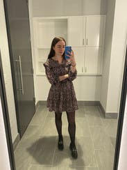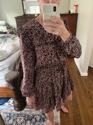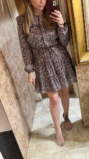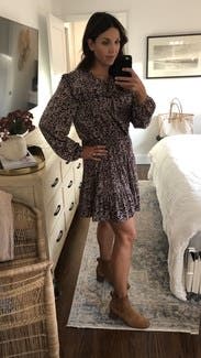 Loved wearing this dress while out exploring all day in NYC. During the day I paired it with white sneakers and for night I switched them out for black heels, both looked fabulous! The drawstring waist is perfect for adding waist definition and I love the more blousy top for a more put together look. I'm keeping this in my closet for Thanksgiving and maybe by then I'll justify a reason to just buy it and have it forever. Highly recommend! Fit note: size down if you have smaller bust/shoulders