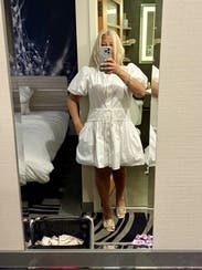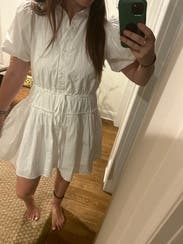 So flattering!! Wore this a few times to dinner! Puff sleeves & adjustable winches waist makes the dress so flattering!