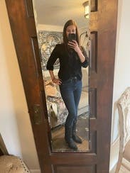 Didn't wear. The shirt was kind of short for me and I'm only 5'2. Also there's ruffles down the front, which is hard to notice in the pictures. My husband called it the black version of the ruffled white Seinfeld shirt. It just wasn't for me.