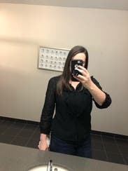 This shirt was a bit old lady looking, and the ruffles are more distinct than in the picture. On top of that, it was almost too short on me and I’m only 5’1”. Ordered a size up to fit my bust, so I had no problem with it buttoning, it was just too short to wear and not really my style.