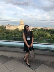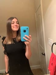 This picture isn't totally helpful but it's the only one I took that night! Rented this for a high school hall of game induction and it was perfect length for youthful but put together look. My friends loved it, I felt that my body was flattered. I don't really have a waist and it hung well on my frame (which most things don't)