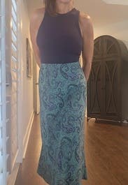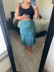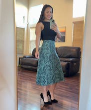 Wore this skirt to work with a fitted navy top. It was effortless but looked so put together. The skirt skimmed my hips and looked classy. Would rent again.