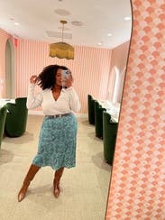 This skirt was so soft and could be work to work or out to dinner, casual or dressed up! A great transitional piece going into spring. Waist is stretchy but felt the medium was TTS.