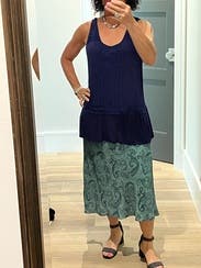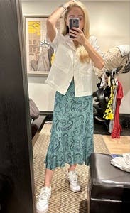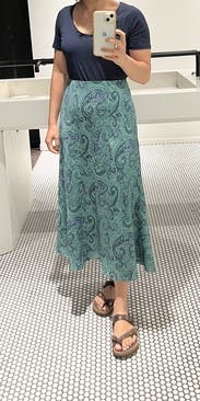 Comfortable easy fitting spring skirt that looks great dressed up or down. Was a great length for my 5’3” frame!