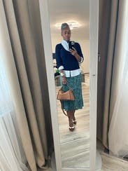 The color combo is beautiful!! I paired with a dark blue satin button down and nude heels.