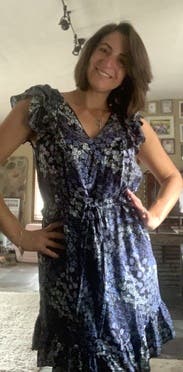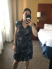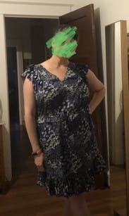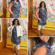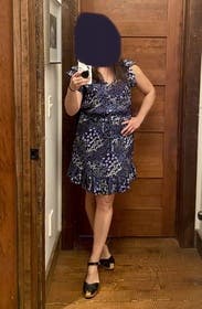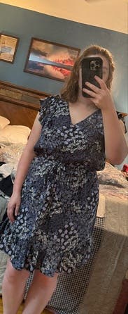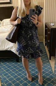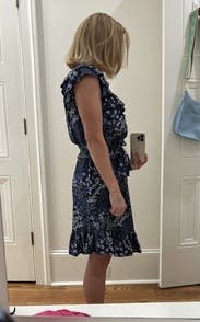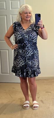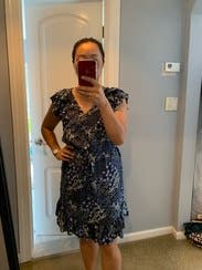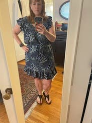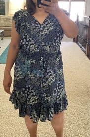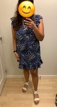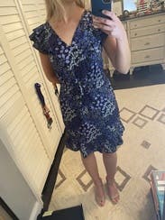 I have mixed feelings about this dress. Pros: it was light and comfortable and forgiving. Cons: The blousy feel and all the ruffles made me feel like I was in a frilly bag! I felt extra large in it, though did wear it a few times given that it was cute and comfy.