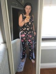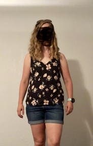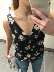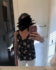 I thought this was a nice shirt, beautiful v neck, and decent thickness straps. The floral pattern is nice, but a little dull in color. I found the darting at the bust a little constricting and the hip area to be narrow. I ended up tucking in the shirt to solve the hip issue. It's nice, but I probably wouldn't rent it again.