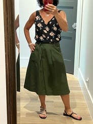 Loved the combination, but the skirt had a bit of an unfortunate fit for me and wasn’t the most flattering at the waist. The shirt was a little oversized under the arms and the fabric was a bit slippery.