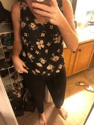 (I did not wear it w these pants lol). Lightweight, cute cut neckline that might be too low for some but I liked it