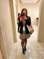 I absolutely love this dress. It fits great and is very flattering and comfortable - the material feels nice and thick, and it's lined. The high neck and houndstooth pattern made for a refreshing change from the solid color a-line dresses I typically wear to work. Would definitely rent again!