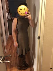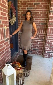 This dress screams fall! Only got a picture with the black top underneath but actually prefer this dress without. Loved it and wore to work!