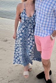 Received many compliments when wearing this dress. Loved the neckline. Very flattering! Perfect vacation dress. Would rent again! Rented Large because only size available but could have done a Medium