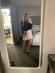 I wore this for work and and afternoon in Vegas and received a million compliments. “So Jackie O…. !” I paired with the AS by DF leather shirt from Rent the Runway and it was a hit! I previously rented this in a 6 and reviewed as a fail. It fit well length wise but was too tight for my belly showing. Sizing up to the 8 was the perfect choice and I would buy this skirt if not for the price. It’s absolutely comfortable and classy for any occasion. I can’t wait to pair it with a tucked in top to show off the fun leather band at the waist!