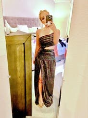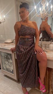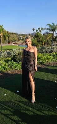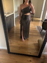 This dress definitely glistened in the night, on my skin, and was the twinkle of the night!! don’t walk, run to get this. It was a little big though so maybe size down. If you have big boobs keep your regular size but you’ll need tape.