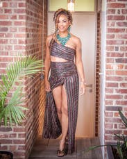 Strong, confident, beautiful, sexy… just a few of the compliments. I LOVED this look. Did a formal photo shoot with my friends. Metallic theme. This dress had all the Metallic colors, so we blended well together. Followed up with an outing to see The Wiz. Soooo many compliments