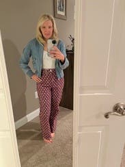 I had to give these pants some love because they have some bad reviews. They were actually super cute and came in clutch when it got a little cold in Texas. They are corduroy material, but not super thick and perfect for shorter gals. I think they fit true to size, but I’m in my first tri with the second baby so already putting on the bloat and wore them unbuttoned underneath my shirt, otherwise would have fit me great.