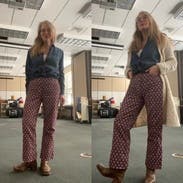 These pants are exactly what I hoped they’d be! It’s not a perfect fit for me, I don’t love the bunching in the front/crotch area, but they do make my butt look great. I love these pants, fun and flirty, and different.