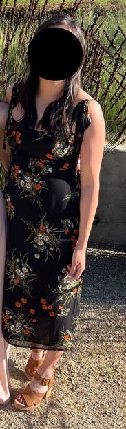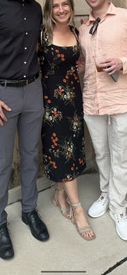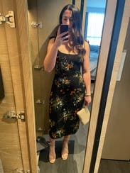 Wore to a bridal shower, super comfortable! It’s got a slit on one side which is fun. Did need help tying the shoulders but they stayed great. Really loved this and felt great in it!