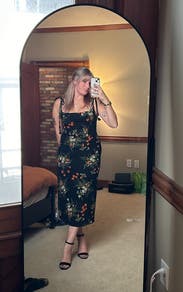 The fit and material are so flattering and emphasize your curves! So many times I want a dress to accentuate my waist without being tight. Also, FINALLY a true to size 4. I bought this 😅