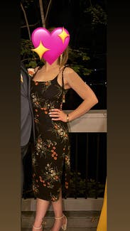 Was a little nervous about getting a Reformation dress since they tend to not fit larger busts well, but this one was stunning! So comfortable, so cute. It could probably be dressed up or down, I wore it dressed up for a wedding and was really, really happy with it. Ordered an 8 and a 10 just in case but the 8 fit perfectly.