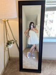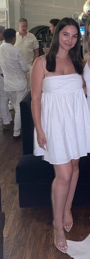 Such a perfect white dress! I wore it to my graduation and absolutely loved it. I sized up one size and the straps were a little long but adjustable so no issues.