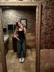 This Reformation peplum vest adds a tailored touch to any outfit with its structured silhouette and button-up front. Pair it with high-waisted jeans for a balanced, modern look. Accessorize with simple gold jewelry to complement the vest's clean lines.