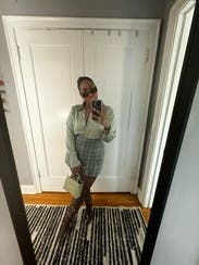 Bring some punk edge to this tweed mini by Reformation when you pair it with a graphic tee and combat boots.