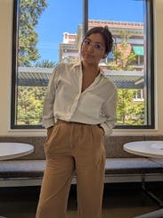 Love these trousers! They are a buttery-soft brushed cotton material that are perfect for work or play. They are high-waisted and run a bit long so I could only wear them with heels but they were super comfortable and have a great look. I’m considering buying them!
