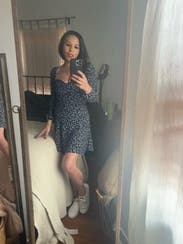Had several issues with the original dresses ordered (zipper broken and stretched out) so this was a replacement and I was THRILLED with it. Wore to a HS reunion- it was cute and flirty but not overly dress or sexy. Wore it with white tennis shoes, but could be dressed up easily. SO flattering- and not too too short (especially for Reformation). I have a small chest, so it worked- but I think bigger busts may have issues with the fit. Wish I could buy it!