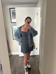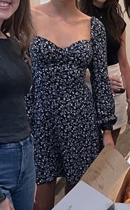 The dress is cute but super annoying because the arms were constantly falling down. It’s also very short