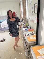 Wore to an outdoor wedding and loved it! The only issue is that it required two other people to zip it for me because the zipper kept getting caught on the fabric because of the rouching (not a sizing issue I swear! Just a composition issue of the dress). A little on the shorter side and if I wore it again I would use body glue because the sleeves were a little finicky. But I loved dancing in it and the pattern was so cute, the fit was really flattering