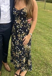 This dress was PERFECT for a casual June wedding. The colors were easy to accessorize with anything and the length/cut made it comfortable to wear and move in. I’m sometimes a 4 but I definitely needed a 6 for this- I’m a 32DD and the bust was still definitely tight. I would absolutely rent this dress again!