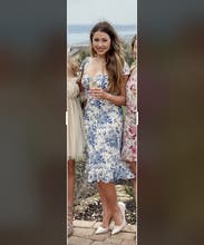 I am usually between and 8 and 10– I went with the 10 based on other reviews and it fit but the next time I rent this (and there will definitely be a next time!) I will go with the 8 due to the give in the back. I’m smaller chested, so there was some gaping for me with the larger size. I loved everything about this dress and am seriously considering purchasing it. I did look it up online to see if there were different prints and found one that I really like— I like the blue and white (almost toile) but I think I would get more use out of a different print because I live in an area with a blink and you’ll miss it spring season.