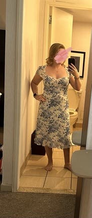 Loved this dress! I wore it for bridal dress shopping & brunch with my bridesmaids and it was perfect. I should’ve maybe sized up 1 size though because my back is a bit wide and athletic that it was hard to zip up by myself. I’ll probably rent a size up next time and if that fits perfect I’ll be buying it.