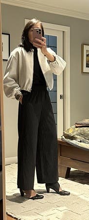 I wanted to love these and wore them a few time to run errands. They’re nice quality, but on me they are big and long like pajamas. I couldn’t bring myself to actually wear them to my office.